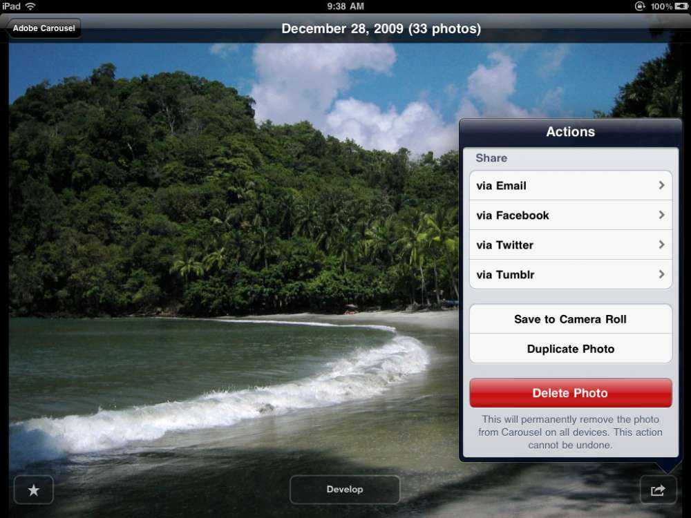 “Με το Adobe Carousel επεκτείνουμε τη δύναμη της εξειδίκευσης της Adobe πέρα από το desktop, σε tablets και smartphones, για άμεση πρόσβαση σε ένα πλήρες άλμπουμ φωτογραφιών και ελευθερία στην επεξεργασία και τη διανομή φωτογραφιών οπουδήποτε και οποιαδήποτε στιγμή” σχολίασε ο Winston Hendrickson, vice president Digital Imaging Products, Adobe.
