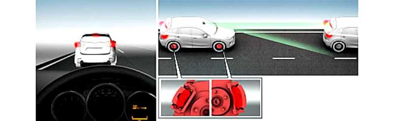 Επιπλέον αν κανείς δεν έχει κάνει σωστή κίνηση τη λειτουργία αυτόματου φρεναρίσματος βοηθά. Αν η διαφορά ταχύτητας κίνησης είναι στα 30 χλμ/ώρα, το σύστημα βοηθά για αποφυγή εμποδίων.