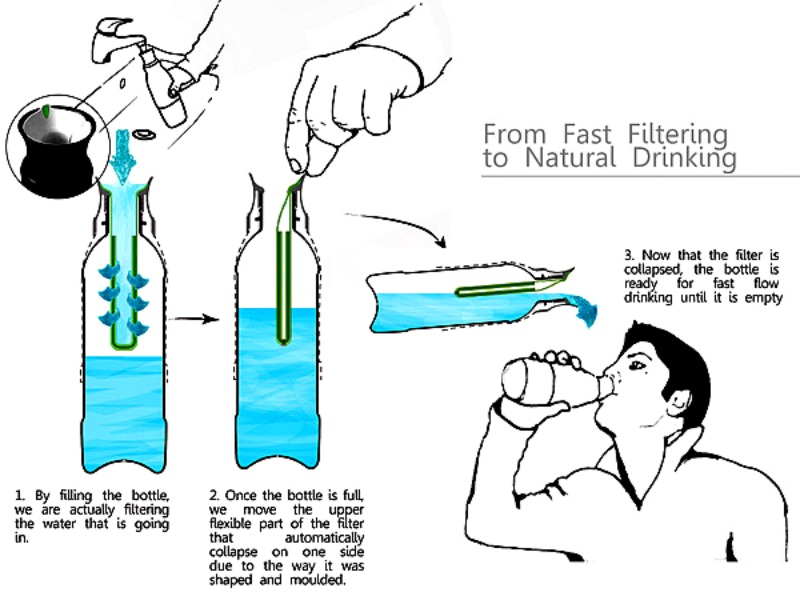 Το δε σύστημα με το φίλτρο, επεκτείνει τη ζωή του μπουκαλιού PET μέχρι και 10 φορές, αλλά είναι και sexy. Δημιούργημα του Nadim Inaty με παρουσίαση του yankodesign.