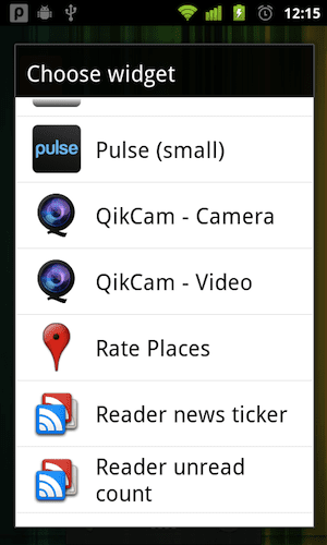 Το QikCam είναι ένα widget που σου επιτρέπει να τραβήξεις φωτό άμεσα, χωρίς preview οθόνη. Ένα δεύτερο QikCam widget υπάρχει για το βίντεο.