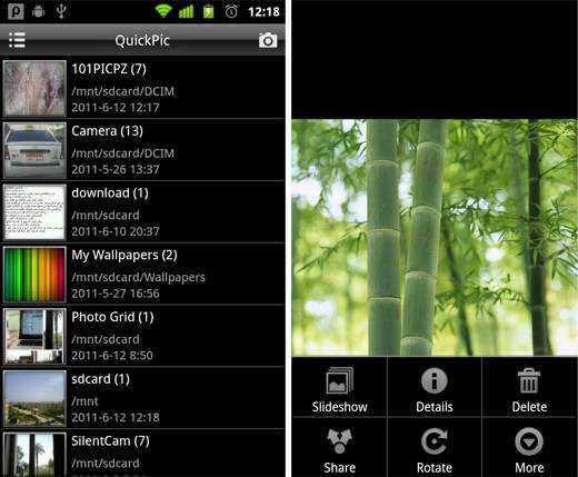 Το QuickPic αντί για το native gallery app του Android κινητού έχει πολλά settings με πιο φιλικό τρόπο. Οργάνωση με name, path ή/και date, ενώ κάθε φωτό γίνεται shared με Bluetooth, SMS, email, ή διάφορες apps.