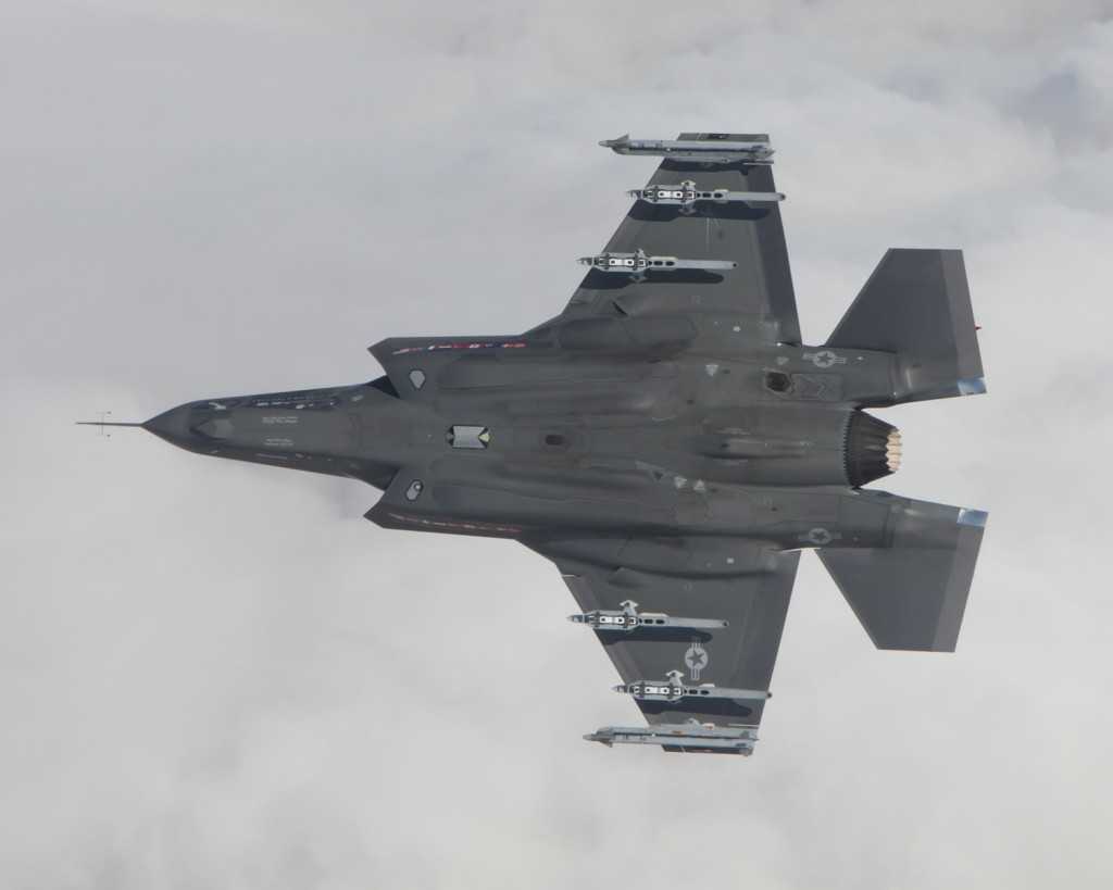 Δεν είναι το πλήρες φορτίο που μπορεί να φέρει το F-35A, που είναι 18,000 λίβρες, ενώ το F-35A εξωτερικά μπορεί να έχει 10 πυλώνες, τρεις σε κάθε φτερό και από δύο έξω από κάθε αποθήκη.
