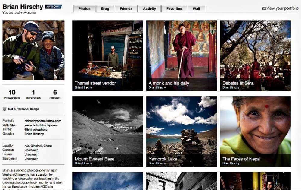 Πολύ ενδιαφέρουσα προσθήκη αυτή της “Market” που επιτρέπει σε άτομα να αγοράζουν ψηφιακά downloads εικόνων ή να παραγγείλουν μεγάλες εκτυπώσεις. Το 500px είναι πιο δημοφιλές στους enthusiast φωτογράφους, υπάρχει από το 2009 και μέχρι το 2011 έχει βάση χρηστών στα 3 εκατομμύρια.