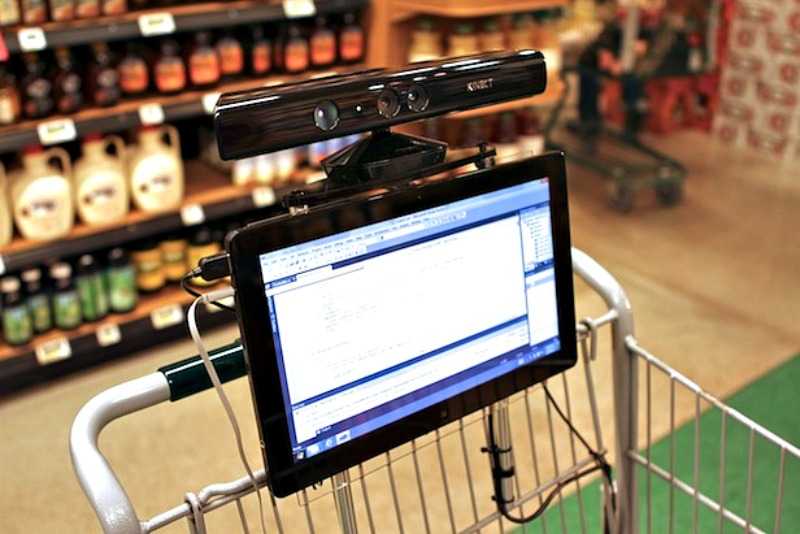Τώρα μια νέα ιδέα είναι η Microsoft, που δεν έχει αναφέρει ποιος έχει ετοιμάσει τη συσκευή, να μας δείξει και τη χρήση σε ένα… σούπερ μάρκετ! Λέγεται πως το έχει ετοιμάζει η Chaotic Moon Labs, ένα γκρουπ που ετοίμασε το Board of Imagination. Το καροτσάκι δοκιμάστηκε σε ένα κατάστημα – της Whole Foods, στο Austin του Texas, και αφορά την τοποθέτηση του Kinect και κινητήρα σε ένα καρότσι που κινείται μόνο του και ακολουθεί τον… πελάτη.