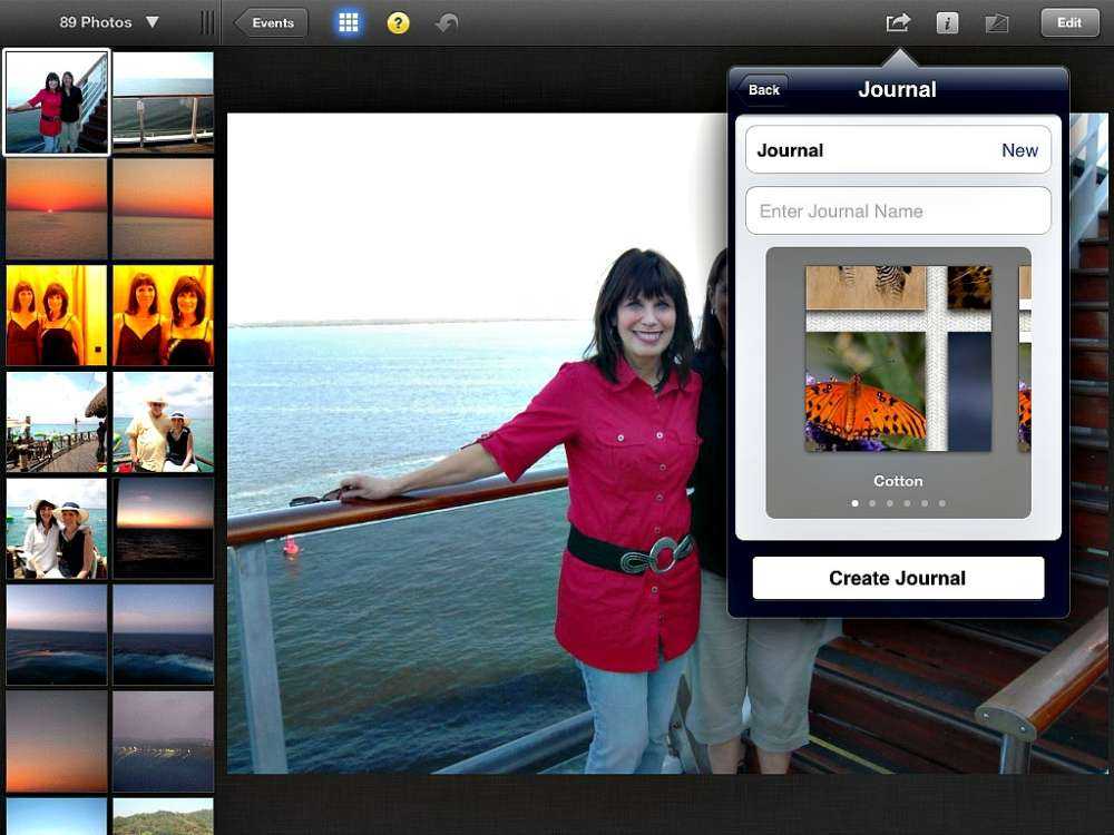 Με tap σε μια φωτό ανοίγει το editing interface και το iPhoto for iOS έχει μια σειρά από multitouch λειτουργίες για crop, το brush interface αφαίρεση φωτό από group.