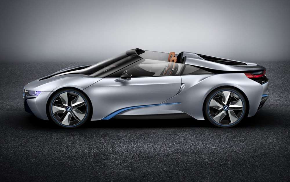 Η BMW ρίχνει την οροφή με το i8 hybrid supercar: είναι το i8 Concept Spyder. Μιλάμε για ένα υβριδικό που βάζει στη πρίζα μπορεί να κινηθεί για μίλια μόνο με ηλεκτρικό κινητήρα ενώ το 131 ίππων ηλεκτρικό μοτέρ κινεί τον μπροστά άξονα μαζί με ένα τούρμπο τρικύλινδρο και συνολικά 223 ίππους που πηγαίνουν στον πίσω άξονα. Το δε 0-62 σε 5 δευτερόλεπτα. Η τελική είναι στα 200+ χλμ/ώρα.
