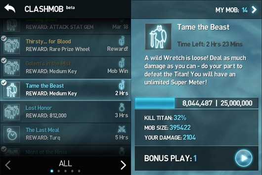 Στο update θα υπάρχει και ένα νέο battle mode με την ονομασία “ClashMob” με το οποίο κάνεις recruit σε φίλους από το Facebook και το Game Center που σήμερα παίζουν Infinity Blade 2 σε ένα “mob”. Έτσι γίνεται διαχείρηση των players με ασύχρονους quests και να έχουν καλύτερη διαχείρηση της υγείας, περισσότερα χρήματα, εξοπλισμός κ.α.