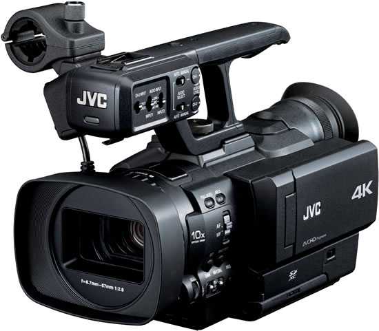 Η Ιαπωνική εταιρία ανακοίνωσε την πρώτη της “handheld 4K camcorder,” την GY-HMQ10. Με ισχύ από τον επεξεργαστή JVC Falconbrid large-scale integration (LSI) για την επεξεργασία, και τον αισθητήρα 1/2-inch CMOS με 8.3 εκατομμύρια active pixels, δίνει ανάλυση (3840×2160) στα 24p, 50p, ή και 60p.