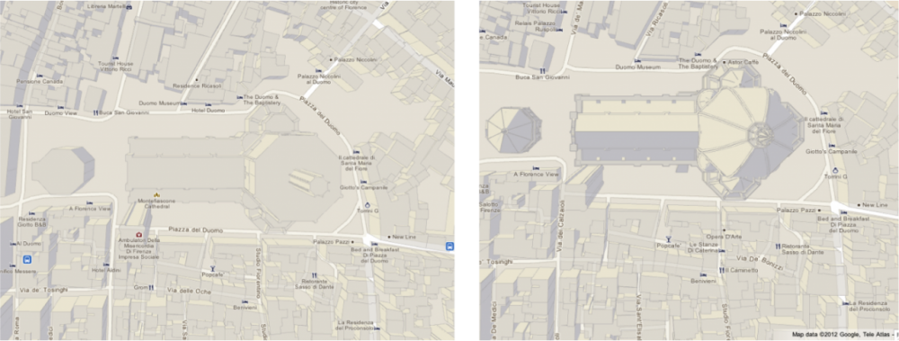 H Google είχε υποσχεθεί βελτιώσει στο Google MapsGL που είναι η δική της τεχνολογία των Beta Maps με την ισχύ του WebGL. The MapsGL μας δίνει κτίρια σε 3D buildings, και 3D photo tours μνημείων όπως και fly over 45 μοιρών σε aerial view ή και Street View χωρίς plugin.