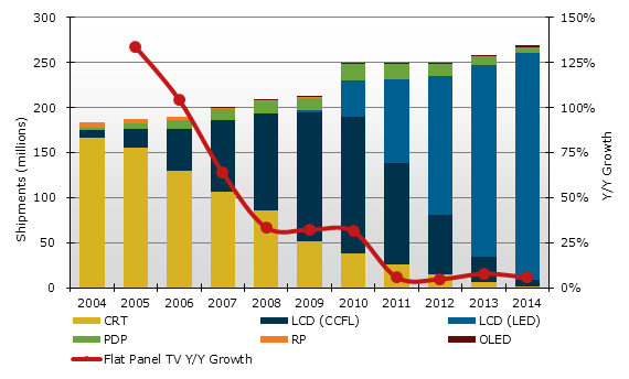 Οι OLED θα πάρουν ένα μικροσκοπικό τμήμα, 50,000 τεμάχια ή λιγότερο σύμφωνα με τη DisplaySearch. Οι δε 3D TVs θα πάνε καλύτερα ενώ ο φωτισμός LED θα αντικαταστήσει περισσότερτο τις φθορίου στις LCD TV.