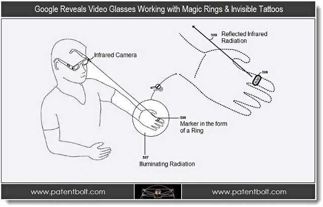 Το Patentbolt λέει πως θα το φοράς δε ημέρα και νύχτα χάρη σε “advanced wearable markers”, κάτι στα δαχτυλίδια. Θα μπορεί να είναι κάτι σαν βραχιόλι, δαχτυλίδι ή και τεχνητό νύχι, γάντι.