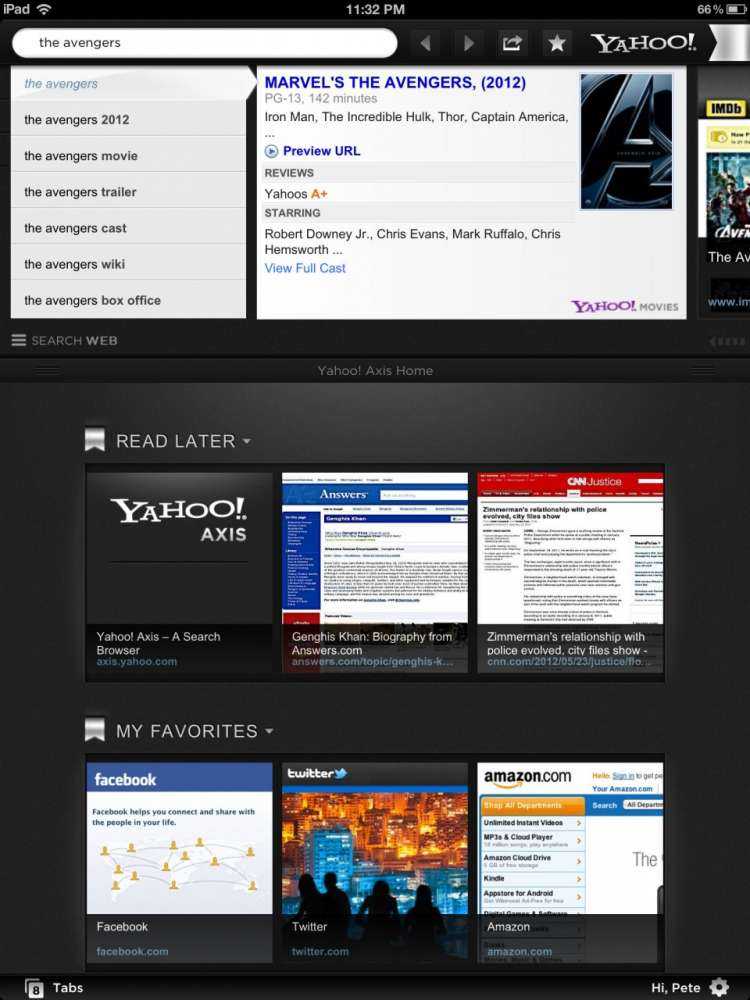 Η νέα υπηρεσία ονομάζεται Yahoo! Axis και υπόσχεται μια “new experience” για αναζήτηση. Το Axis έχει σαν moto: “only search experience that allows you to enter your search, see and interact with visual results” – και τα κάνει χωρίς να φύγεις από την page που βλέπεις. Το Axis ενσωματώνει τον desktop browser και υπόσχεται συνςεργασία με πολλαπλές συσκευές by default.