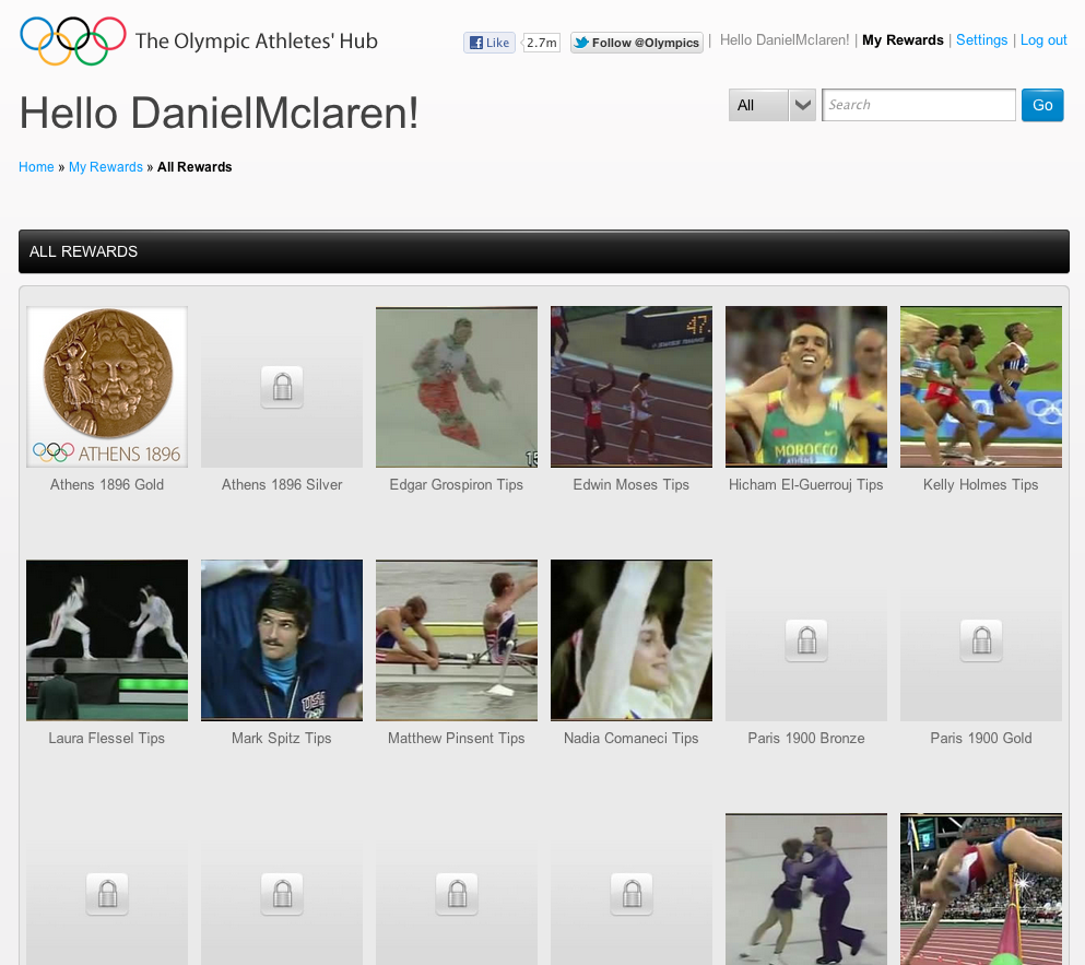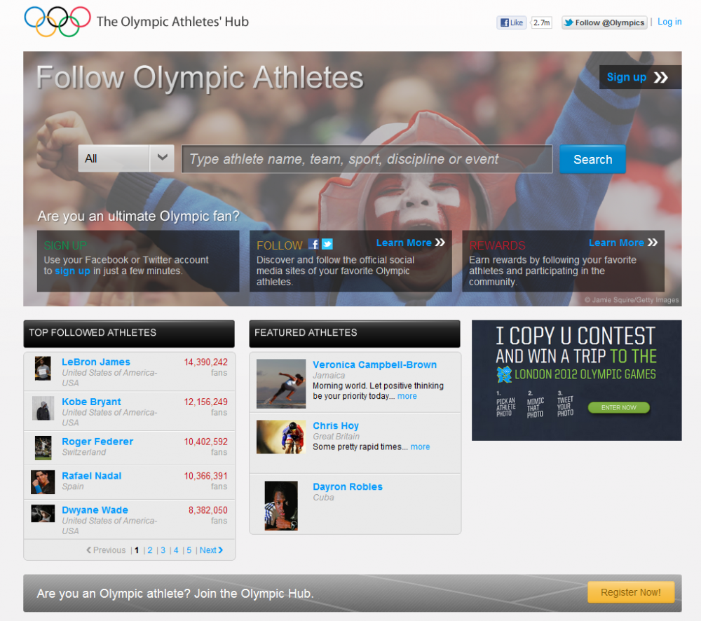 Στο hub υπάρχουν links για τους Michael Phelps, Aly Raisman, Jessica Hardy και Logan Tom, με οπαδούς να έχουν βάλει την Team Ireland, την Ελβελτική Ολυμπιακή Ομάδα όπως και την Αμερικανική.
