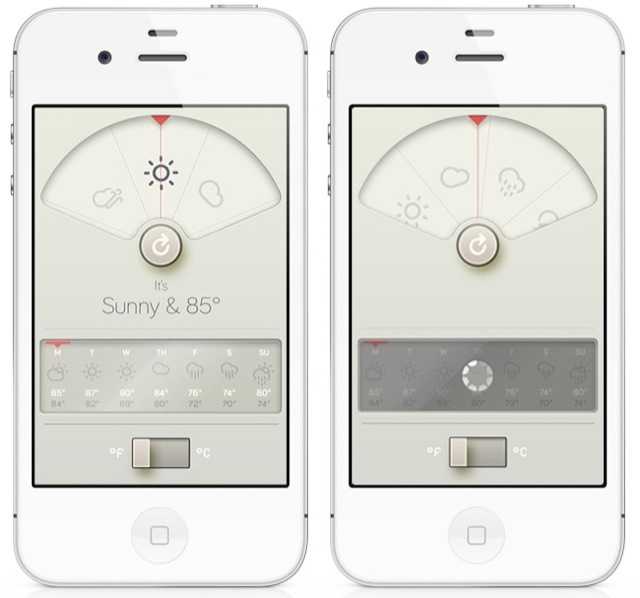 Δείτε όμως μια άλλη νέα σχετικά app που ονομάζεται WTHR. Όπως βλέπετε η app επιτρέπει σε users με έναν πολύ καθαρό και minimalist σχεδιασμό και interface που μοιάζει με ζυγαριά να βλέπουν τον καιρό. Ο σχεδιαστής κος David Elgena βάσισε τον σχεδιασμό στο Dieter Rams’ 10 Principles of Design.