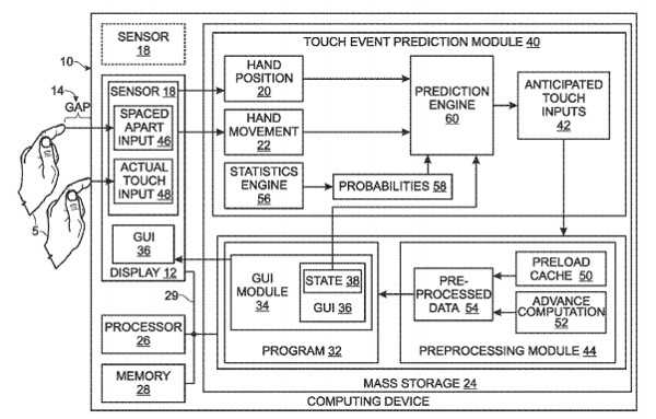 Αυτή η πατέντα θα βασίζεται σε ένα σύστημα πρόβλεψης – predictive system, που θα ‘προβλέπει’ πως θα κινηθούν τα δάχτυλα μας στη συνέχεια. Αυτή η διαδικασία έχει ανάγκη από υπολογιστική δύναμη για να δουλέψει χωρίς lag και το αποτέλεσμα είναι ένα ομαλό user interface με ειδικούς αλγόριθμους – predictive algorithms.