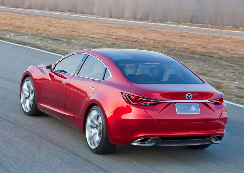 … και πάρα πολλά στοιχεία από το καταπληκτικό Takeri Concept του 2011 Tokyo Motor Show. Εκτός από φωτιστικά σώματα, χερούλια και πλαϊνούς καθρέπτες, σχεδόν όμοιο. Με τη σχεδιαστική ‘γλώσσα’ “KODO – Soul of Motion”. Καταπληκτικό.