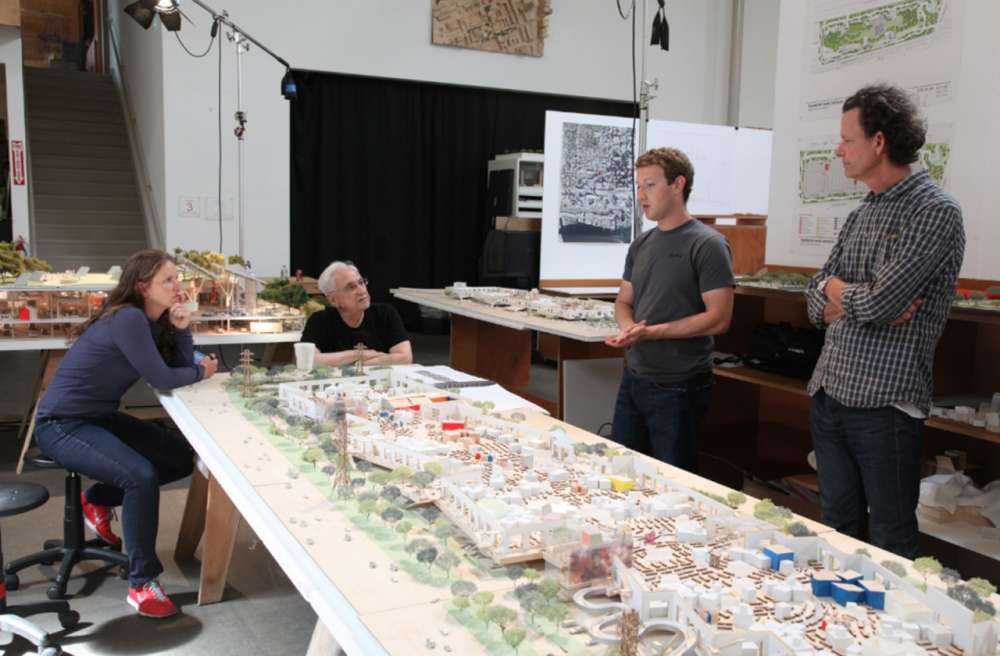 Όπως έγραψε το κος Mark Zuckerberg: “I’m excited to work with Frank Gehry to design our new campus. The idea is to make the perfect engineering space: one giant room that fits thousands of people, all close enough to collaborate together. It will be the largest open floor plan in the world, but it will also have plenty of private, quiet spaces as well. The roof of the building will be a park that blends into the community with a long walking trail, a field and lots of places to sit. From the outside it will appear as if you’re looking at a hill in nature.”