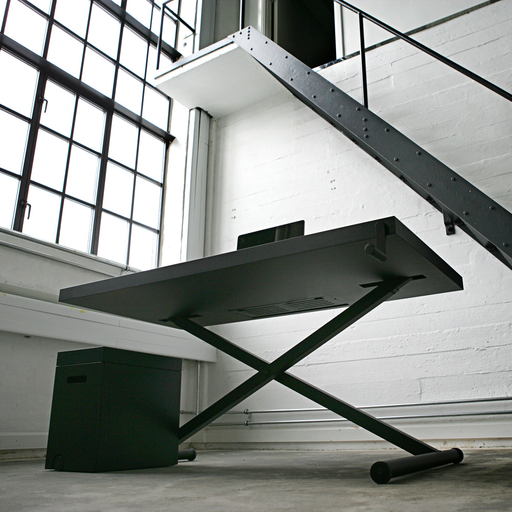 Καμιά φορά δεν χρειάζονται ηλεκτρικά μέσα. Με χρήση των mechanics που έχουν οι γρύλλοι και τα συστηματα σιδερώματος, το XTable της KiBiSi δίνει ένα γραφείο που ρυθμίζεται σε… ύψος! Απλό.