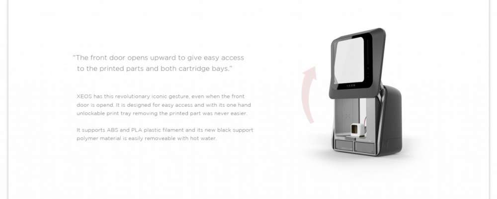 O μικρός σε μέγεθος XEOS 3D printer έχει τη δυνατότητα να στηθεί σε μικρούς χώρους εκεί όπου μεγάλοι εκτυπωτές αντικειμένων, CNC και άλλα δεν παίζουν. Η όλη κατασκευή έχει μέγεθος 66% μικρότερο σε σχέση με κάθε 3D εκτυπωτή που είναι διαθέσιμος και μπορεί να στήνει γεωμετρικές φόρμες σε ελάχιστο χρόνο. Τα παράθυρα δίνουν εικόνα της διαδιασίας ενώ οι δημιουργοί έχουν στο νου και ένα step-by-step software για Macs / PCs και tablet μέσω WiFi.