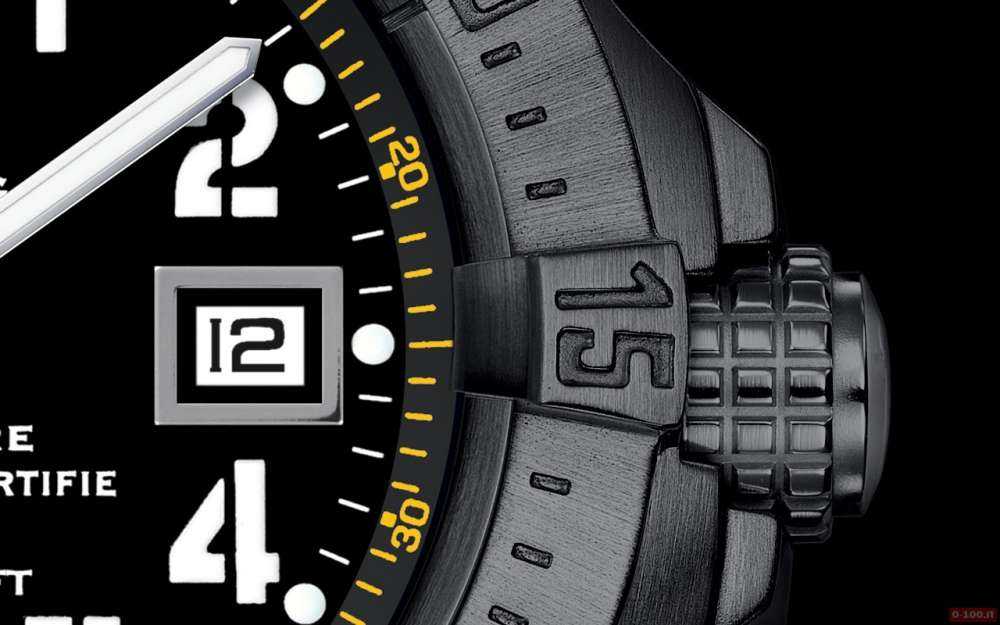 Breitling Avenger Seawolf Blacksteel Yellow Code. Και ένα όνομα που αρκεί για να περιγράψει ένα ανθεκτικό ρολόι με έως και 3000 μέτρα βάθος, ατσάλινη με black carbon κάσα. Το Yellow αφορά λεπτομέριες σε σημεία ενώ θα βγει σε 1,000 τεμάχια.