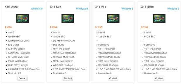 Αυτό είναι το X15 και θα βγει σε 4 διαφορετικές εκδόσεις. Στα $1,100 το X15 Elite, στ $1,600 το X15 Ultra. Στα βασικά specs υπάρχει 8GB DDR3 RAM, μια 10.1” IPS 1920×1080 Full HD οθόνη αφής και μια 1.3MP κάμερα μπροστά και πίσω 5MP όπως και Bluetooth 4.0.