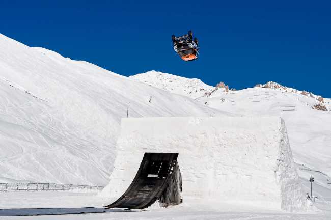 O κος Guerlain Chicherit με τι ειδικό του Mini εκτελεί ένα παιδικό όνειρο: κάνει backflip με το ‘αμαξάκι’ στις Γαλλικές Άλπεις.