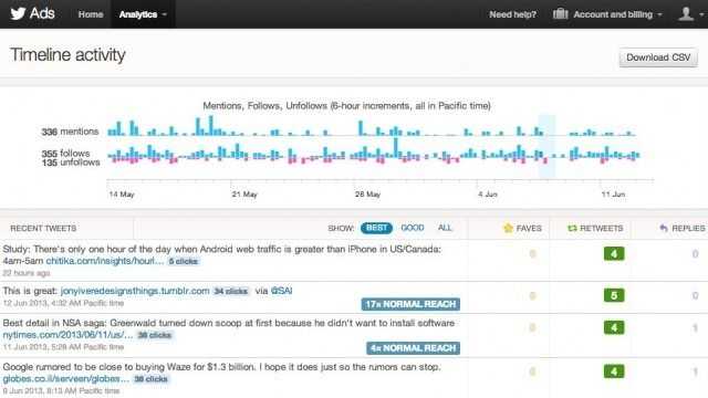 Το Twitter για ένα διάστημα πάντως έδωσε ελεύθερη πρόσβαση στα analytics dashboard με τον αριθμό των retweets, favorites, και click-throughs για κάθε tweet, ένα χαρακτηριστικό διαθέσιμο αλλά όχι ανοιχτό μέχρι σήμερα.