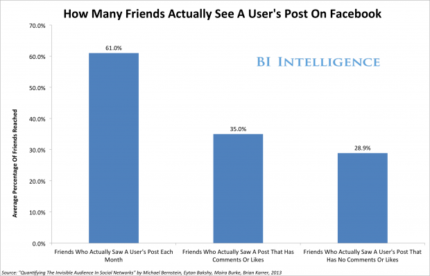 Κατά την έρευνα πάντως παρά την αλλαγή ο μέσος αριθμός των user posts θα μείνει πάνω κάτω ίδιος. Σημειώνει δε πως posts που δεν λαμβάνουν likes ή comments έχουν και μικρότερη θέαση με μέσο όρο το 28.9% στο δίκτυο των χρηστών. Σε διάστημα ενός μήνα πάντως που κράτησε η έρευνα, οι εμπλεκόμενοι Facebook users είχαν ένα τουλάχιστον από τα posts τους να φτάνει το 61% των friends.