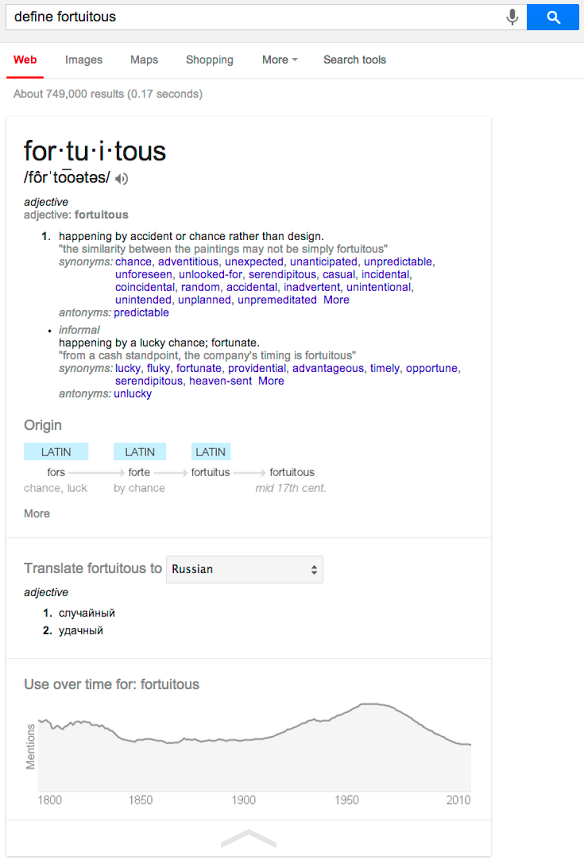 Πιέζοντας δε το microphone στην Google Search app έχεις και απάντηση ενώ μπορείς και να ρωτήσεις “What’s the definition of fortuitous?” ή “What are synonyms for fortuitous?” Και με 60+ γλώσσες να μεταφραστούν.