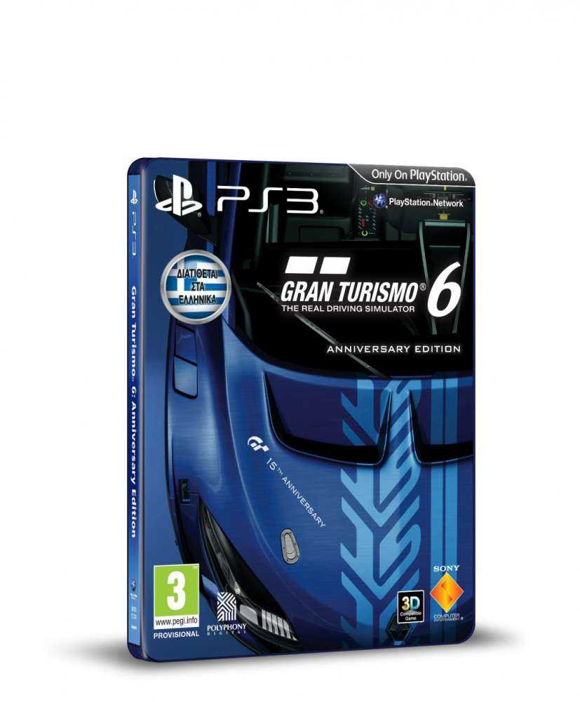 Παράλληλα, στην αγορά θα κυκλοφορήσει μια επετειακή, συλλεκτική έκδοση του παιχνιδιού (GT6: ANNIVERSARY EDITION), η οποία είναι ήδη διαθέσιμη για προπαραγγελία. Στην ειδική αυτή έκδοση θα περιλαμβάνονται 20 βελτιωμένα αυτοκίνητα, 1 εκατομμύριο credits για εξαργύρωση, ειδικές επιλογές προσαρμογής, ένα μοναδικό κράνος και μια στολή οδήγησης σε ψηφιακή μορφή, αλλά και ένα ξεχωριστό avatar για το PlayStation®Network –και όλα αυτά σε μια συλλεκτική συσκευασία “SteelBook”.