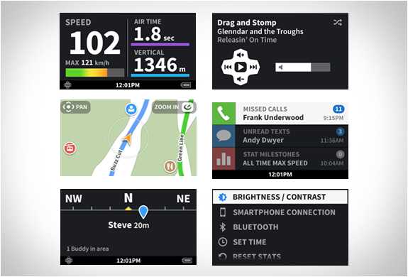 Δίνει μια 14άρα εικόνα μέσα στα goggle και ελέγχεις “…speed, altitude, jump analytics, temperature,” ενώ βλέπεις που είναι οι φίλοι σου, ακούς μουσική, απαντάς σε κλήσεις και βλέπεις μηνύματα (…). Με τους navigate resort maps μέσα και το GPS.