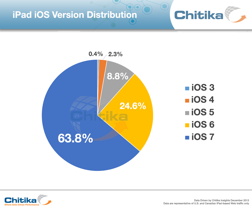 Το δε 2012, το iOS 6 χρειάστηκε 6 μήνες για να φτάσει το 83% ενώ το iOS 7 έφτασε το 74.1% σε μήνες.