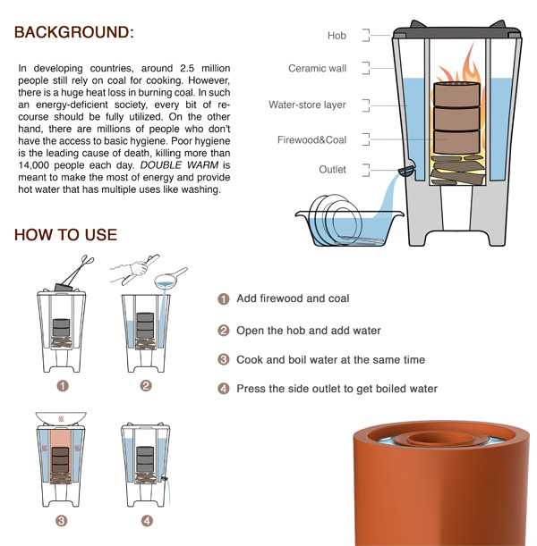 Αν η Γη ήταν τετράγωνη; Η “Double Warm Multi-functional and Energy-efficient Coal Stove” βασίζεται σε μια ιδέα ασιατική και έχει σαν στόχο να παρέχει και ζεστό νερό και θέρμανση σε χώρους και περιοχές όπου οι υποδομές είναι μετρημένες όπως το φαντάστηκαν οι σχεδιαστές Huang Yichen, Xu Wei, Ye Yiwen, Lu Nannan, Ye Peng, Pang Shenli, Lin Danyan & Qiu Yiwu (…)