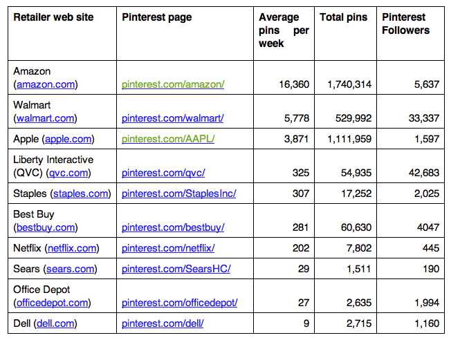 Η δε Apple ήταν δεύτερη αλλά με 3 φορές λιγότερα pins/shares στα 5,778 μέσα στο Pinterest που έχει 70 εκατομμύρια users που αγαπούν το image-heavy content και ενδιαφέρει πολύ όσους πωλούν λόγω και τις επιτυχίας στο γυναικείο κοινό.