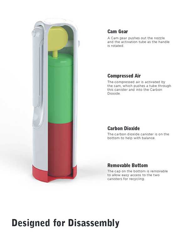 Κάτι πρέπει να γίνει με τον κλασικό πυροσβεστήρα. Οι ιδέες έρχονται και φεύγουν για αντικατάσταση του και μια από αυτές είναι και το Fireguard του σχεδιαστή κου Jon Grossman. Χωρίς περόνι, αλλά μόνο με την κίνηση, με εύκολη αντικατάσταση του εσωτερικού.