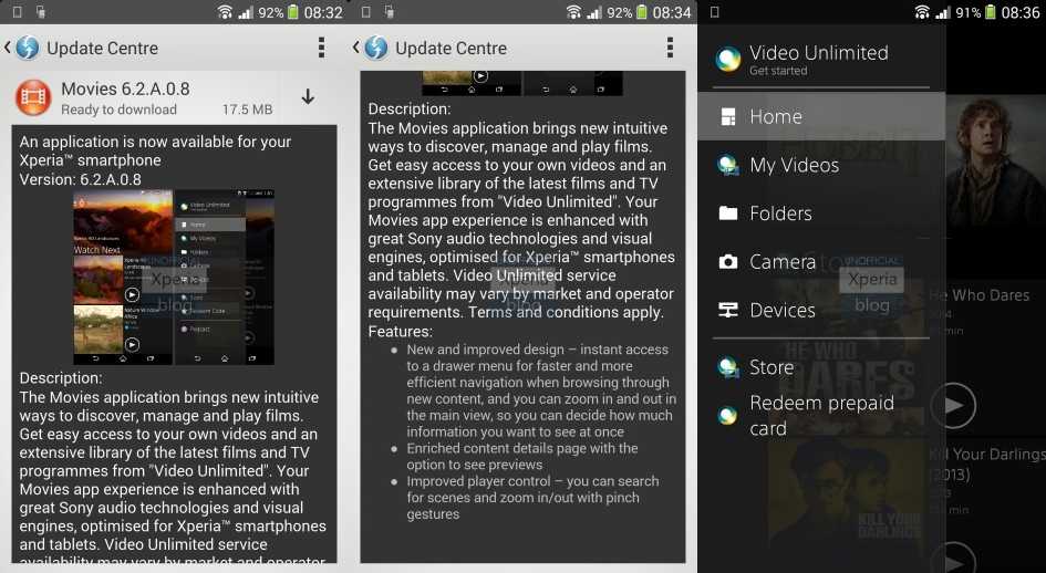 Οι νέες εκδόσεις των Sony Movies εκδόσεων είναι οι 6.2.A.0.8, και είναι ένα μεγάλο update σε σχέση με το προηγούμενο build number 5.3.A.0.20.