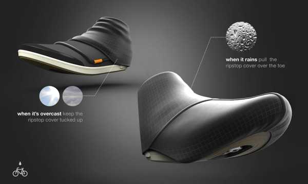 Ονομάζεται Urbanized Cycling Shoe και σχεδιάστηκε με στόχο να δίνει σε αναβάτες τα ιδανικά παπούτσια για ποδήλατο. Πολλοί αναβάτες κουβαλούν ένα δεύτερο ζευγάρι αλλά αυτό το concept έχει μια σειρά από εκπληκτικές ιδέες όπως LED φώτα στη σόλα.