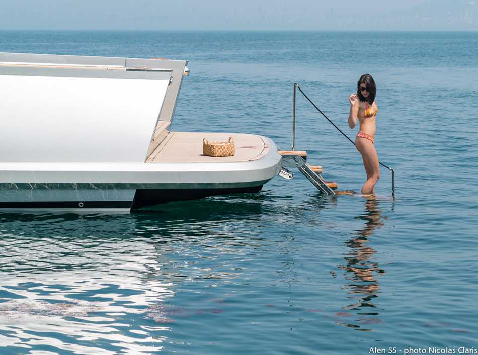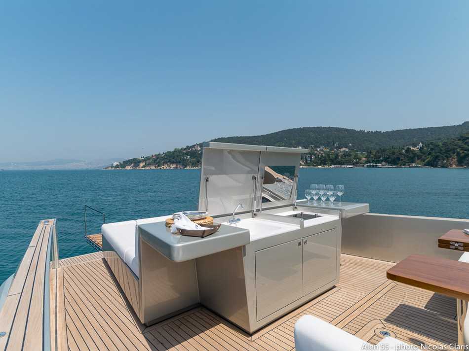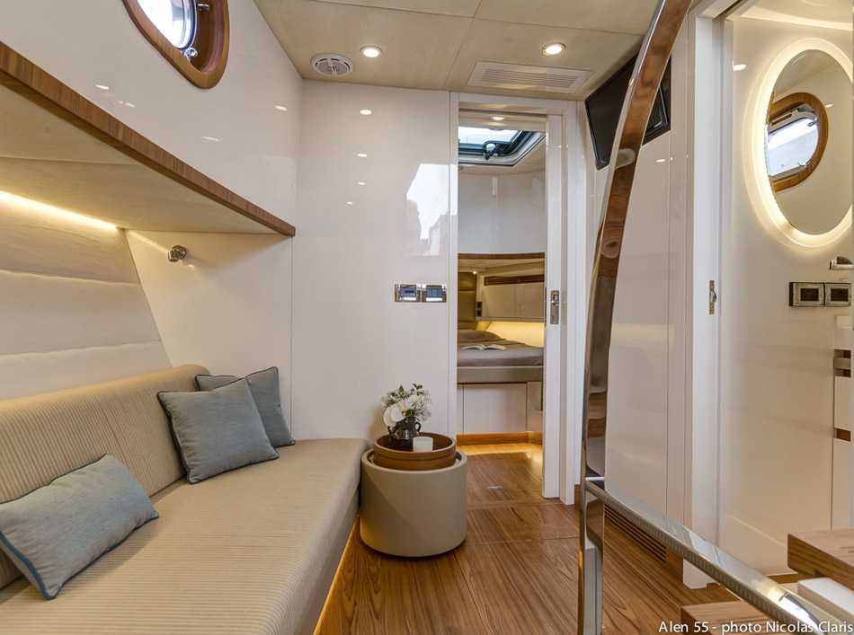 Με ένα full composite σώμα και πυρήνα Airex είναι ένα luxury σκάφος που λαμβάνει την ισχύ του από δύο 800hp κινητήρες Volvo και φτάνει τους 30 κόμβους σε πλεύση με ανώτερη τους 35. Με ένα walk-around deck, τραπέζι που αντέχει μέχρι και 8 άτομα, ανοιχτή κουζίνα και κρυφό, custom-made σύστημα άγκυρας όπως και μεγάλη περιοχή lounge ή ένα μεγάλο master bedroom.