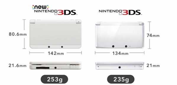 Βελτιωμένες είναι οι 3D δυνατότητες τους με βελτιωμένη 3D οθόνη που έχει καλύτερες γωνίες θέασης, ‘καλύτερη CPU’, μεγαλύτερη μπαταρία και νέο analog χειριστήριο. Το νέο Nintendo 3DS είναι κάπως πιο μεγάλο, πιο παχύ και 18 γραμμάρια πιο βαρύ. Από την άλλη το νέο 3DS XL είναι πιο λεπτό και 7 grams γραμμάρια ελαφρύτερο. Και τα δύο μοντέλα θα έχουν και πολλές επιλογές customising.