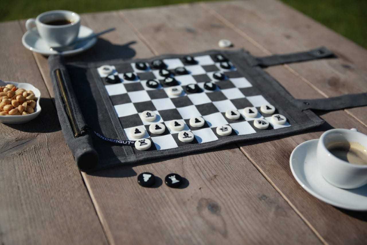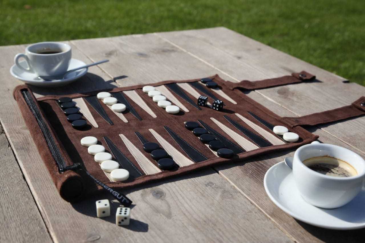Σχεδιασμένα στη Γερμανία από μια ειδική εταιρία που ονομάζεται Sondergut, είναι από δέρμα ραμμένο στο χέρι. Επιτραπέζια ειδικά για ταξίδι. Διαλέγεις ανάμεσα σε: Roll-Up Chess Game και Roll-Up Backgammon Game. Όμορφα.