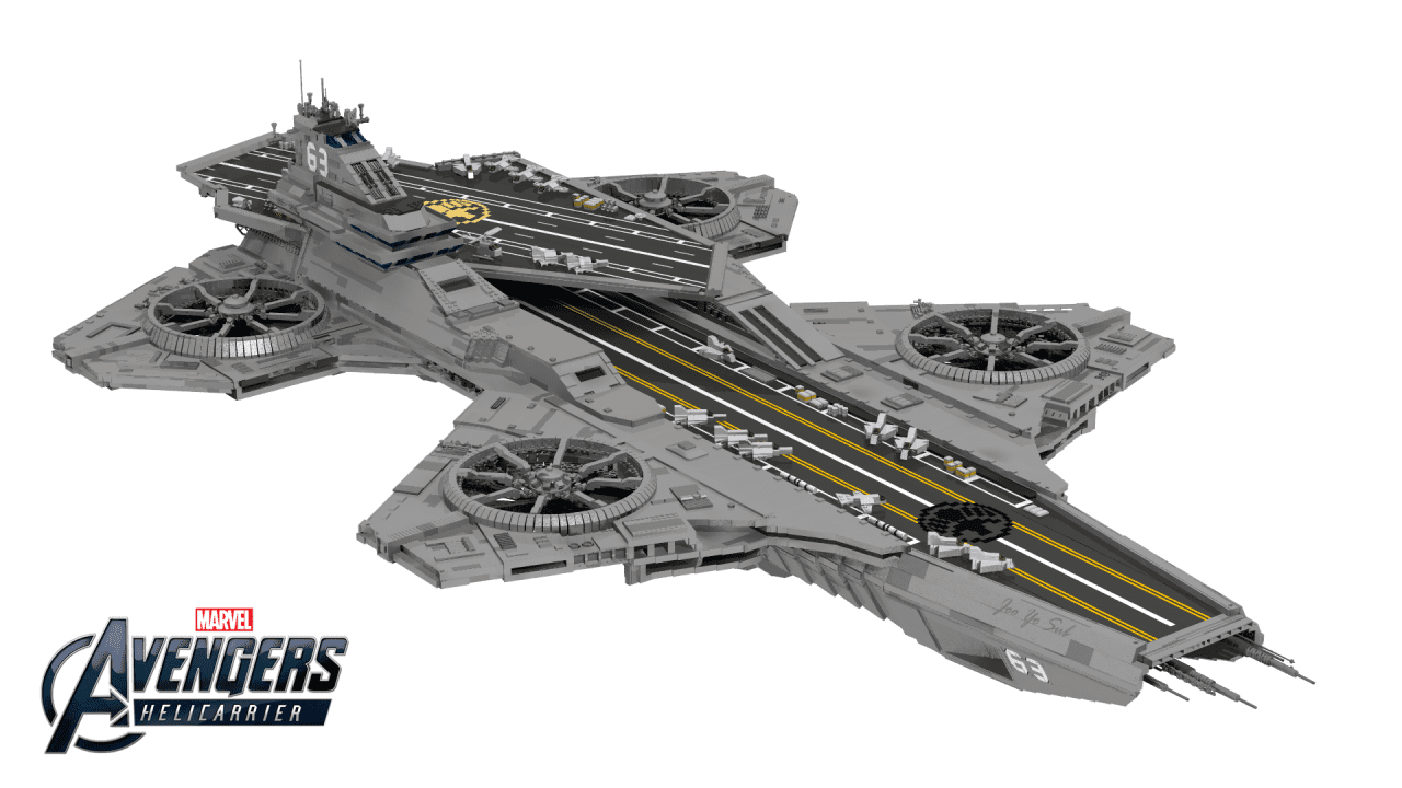 Και ΑΥΤΟ είναι το επίσημο SHIELD Helicarrier set της. Το διάσημο ιπτάμενο command and control όχημα της μυστικής ομάδας είναι φτιαγμένο από 3,000 τεμάχια ενώ δίνει και πέντε mini figures όπως και 12 microfigures ειδικά για την κλίμακα του. Με κόστος $349.99 θα βγαίνει σε διαστάσεις 31 με 17 ίντσες.