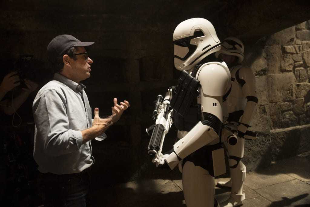 L to R: Director J.J. Abrams on set w/ John Boyega (Finn).