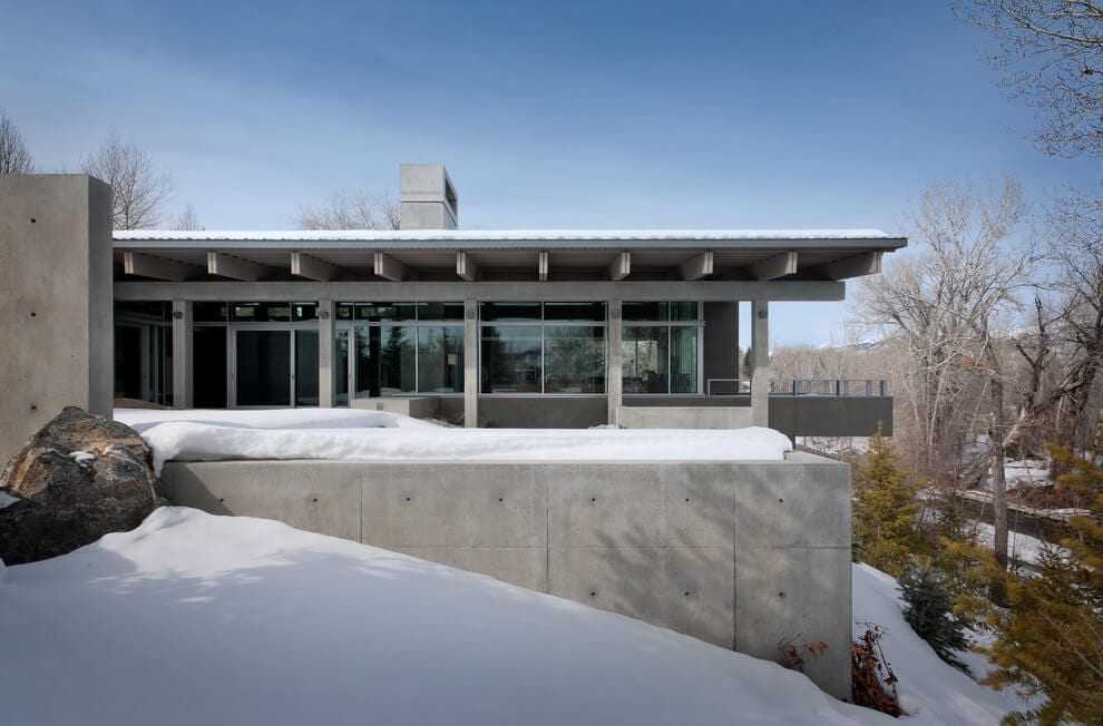 Το River House είναι μια από εκείνες τις αρχιτεκτονικές δημιουργίες που δεν μπορεί παρά να σε ενθουσιάσει. Δομή από μπετό, χώροι open living, εξωτερικά λιτό, τεράστια παράθυρα που κοιτούν τα Northern Rock Mountains. Και λόγοι να πεις πως η ζωή σου είχε αποτέλεσμα.