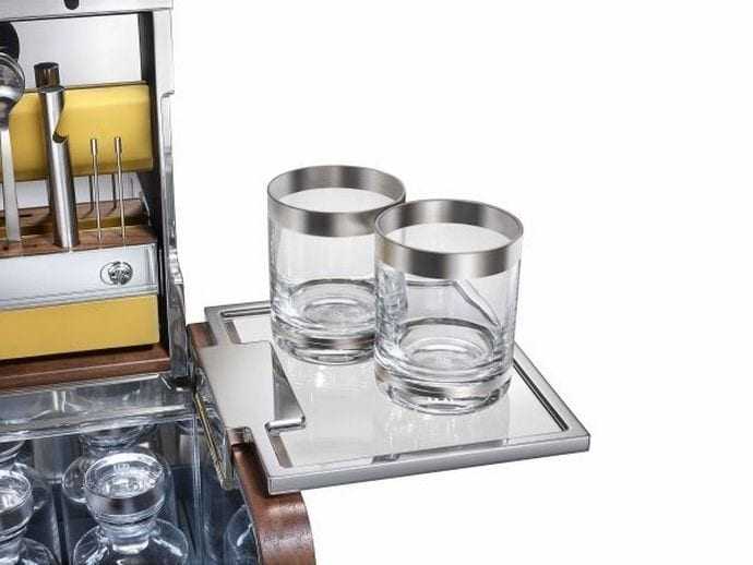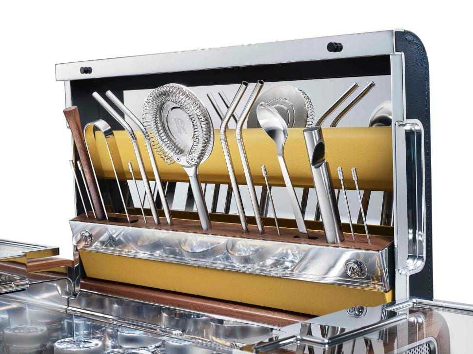 Η όλη κατασκευή είναι από καλό ξύλο – American Walnut Wood, και Natural Grain δέρμα, υλικά που έχουν φτιαχτεί και για το εσωτερικό των Rolls Royce. Ειδικά φώτα, ποτήρια platinum tipped, γυαλάδα και κάθε δυνατή λεπτομέρεια στο υπέρτατο με ένα μονόγραμμα ‘RR’ εκεί που χρειάζεται. Μόλις 15 τεμάχια προς £26,366 το ένα που σημαίνει $46,328 παρακαλώ. Αν το χρειάζεστε, θα πάτε σε μια από τις 150 αντιπροσωπείες της Rolls Royce στον πλανήτη.