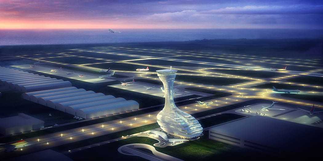 Η εικόνα είναι η πρόταση για τον νέο Πύργο Ελέγχου Εναέριας Κυκλοφορίας στην Κωσταντινούπολη. Με ύψος 95 μέτρα πάντως το αρχιτεκτονικό γραφείο που την έχει δώσει στη δημοσιότητα λέει πως η έμπνευση είναι από τους γλάρους της Istanbul αλλά και την τέχνη της αγγειοπλαστικής. Μέσα από μια αεροδυναμική φόρμα που δείχνει ‘μόλις’ να αγγίζει το έδαφος.