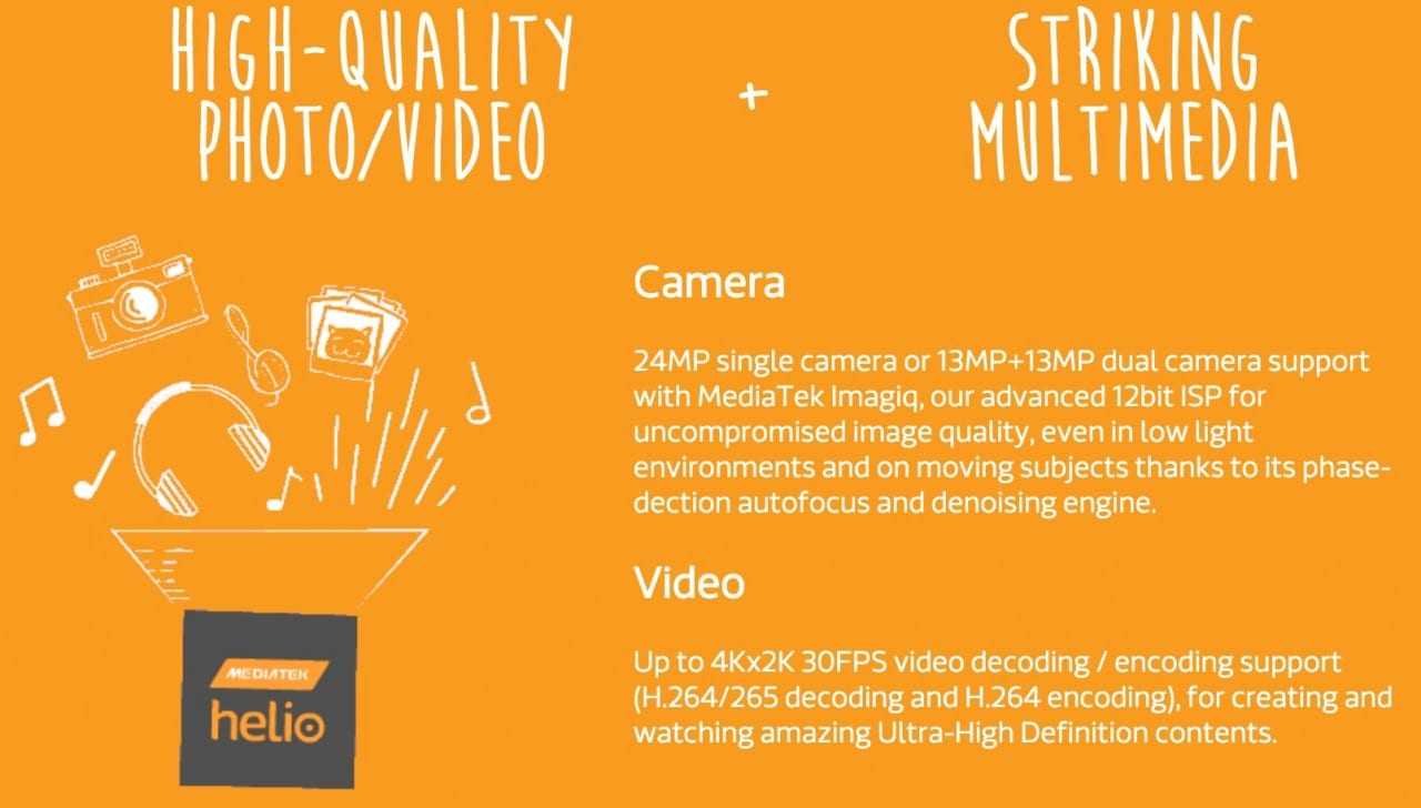 Δεύτερη καινοτομία MediaTek είναι νέα τεχνολογία κάμερας. Το P20 έχει έναν MediaTek Imagiq Image Signal Processor (ISP) με “advanced 12bit Dual ISP” για Bayer και Mono.