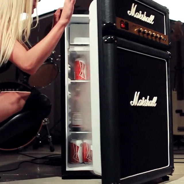 Το ψυγείο αυτό είναι φτιαγμένο από εξαρτήματα ενισχυτών Marshall και έχει τα logos, το ύφασμα, το faceplate και όλο το πακέτο για να περάσει αν δεν το δεις σαν κανονικός ενισχυτής!