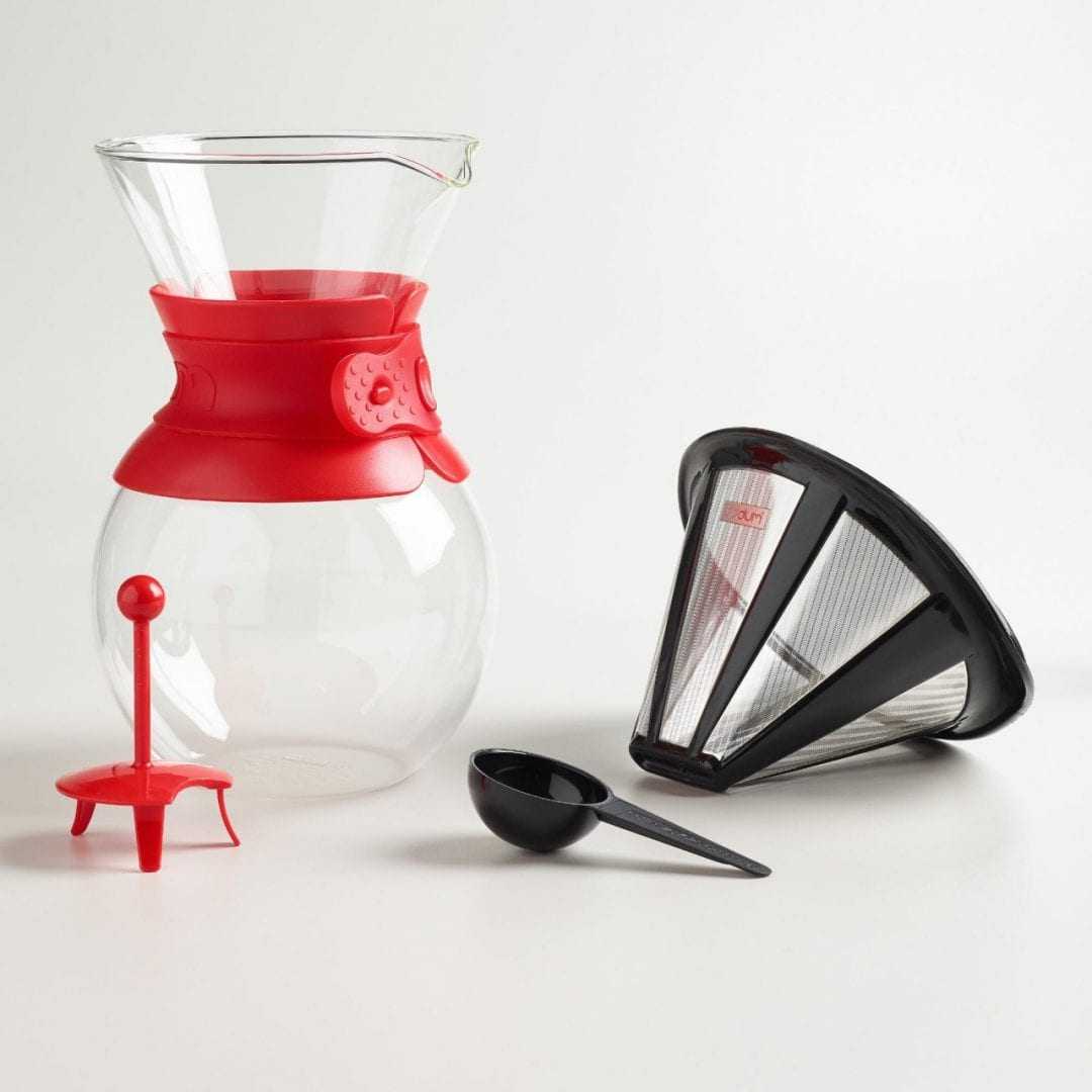 Ιδού το Bodum Pour Over Coffee Maker. Μια προσθήκη αξιόλογη στην καθημερινή σας συνήθεια. Ανθεκτικό από ποιοτικό γυαλί – mouth-blown borosilicate glass, ετοιμάζει οκτώ φλιτζάνια και υπάρχει σε αρκετά χρώματα.