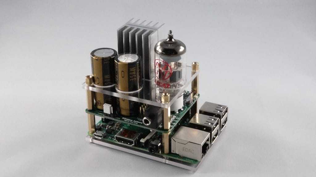 Το add-on είναι συμβατό με όλες τις 40-pin εκδόσεις του Pi, με ένα επιπλέον 24-bit DAC, μονο 12AU7 tube gain stage, και ολοκληρωμένη έξοδο Class A για ακουστικά 32 μέχρι και 200 Ohms.