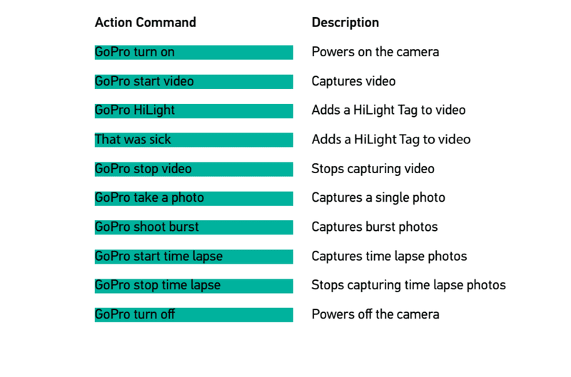 Το εγχειρίδιο λέει για αρκετές voice commands όπως: “GoPro turn on” για να ανοίξει, “GoPro start video”, για video capture, “HiLight Tag” και όχι μόνο.
